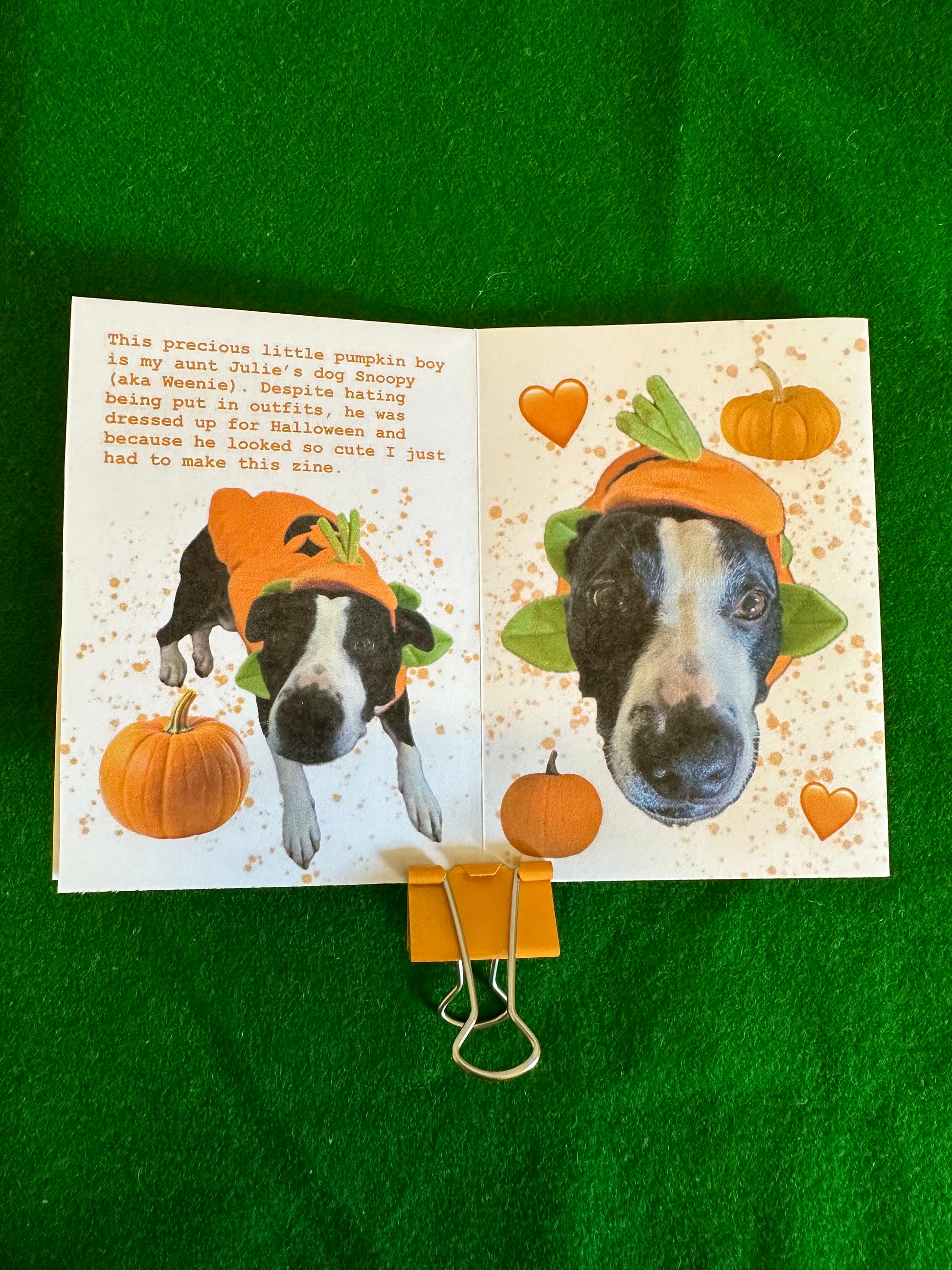 - The Hallo-Weenie Zeenie!: A collection of cute pictures of my aunt's dog Snoopy dressed in a pumpkin outfit that I feel everyone needs to see.